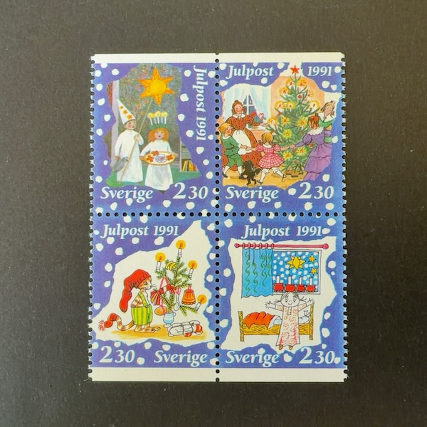 スウェーデンにおける子どもの本400年記念とクリスマスを兼ねた切手です。