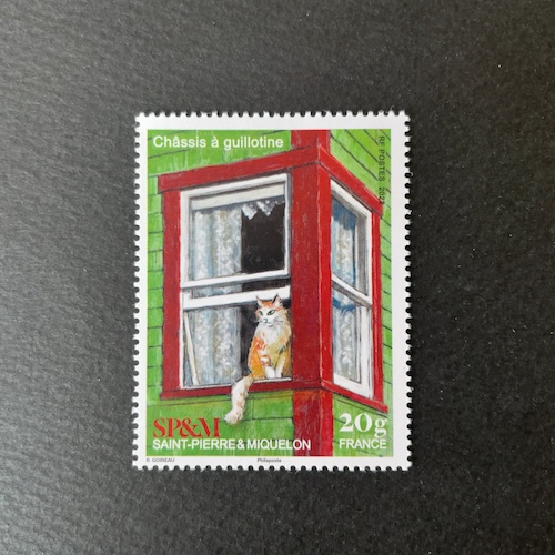窓がテーマの切手ですが、ネコがいることで赤い窓枠が引き立っています。