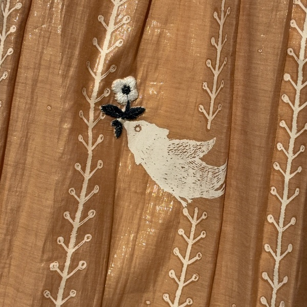 ミナ ペルホネンの服飾作品は、縫製やシルエット、素材選びに至るまで細部に思想が宿り、そのすべてが身につける人と時間を分かち合うものとして設計されています。
