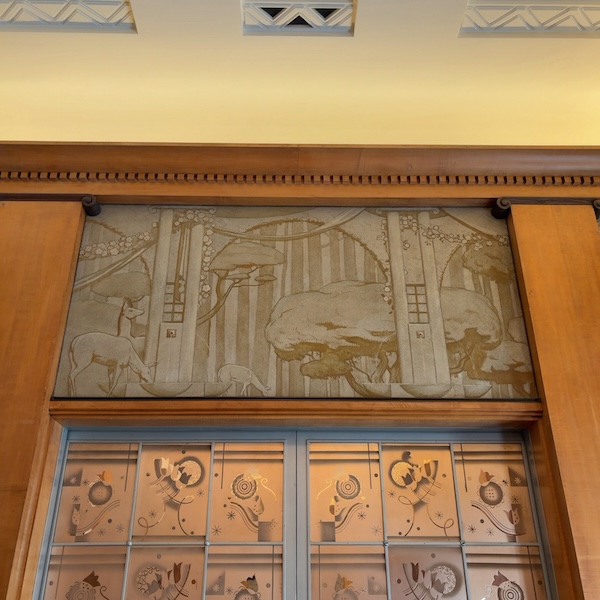 第一応接室の扉の上には、森の中の鹿と熊を描いた絵画が静かにはめ込まれています。