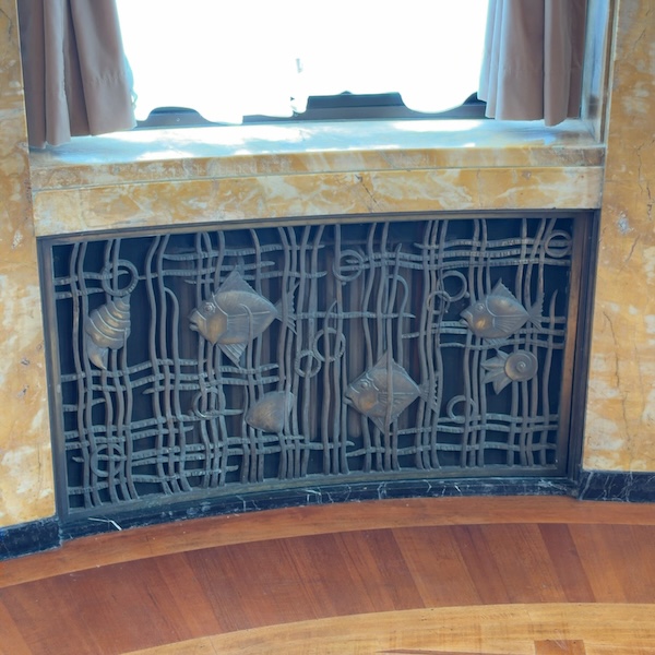 大客室のラジエーター・カバーには熱帯魚が泳ぎ、別の部屋のラジエーターカバーには巻き貝や貝殻が金属で繊細に表現されています。