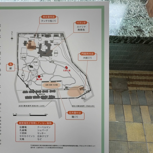 展示に添えられた当時の敷地図には、それぞれの動物がどこで飼われていたかが几帳面に記されていて、この地図を眺めているだけでしばらく時間が経ってしまいます。