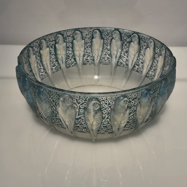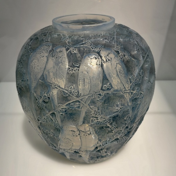 ルネ・ラリック(René Lalique) 《インコのオパルセント・ガラス》も新作を合わせて出品されていました。